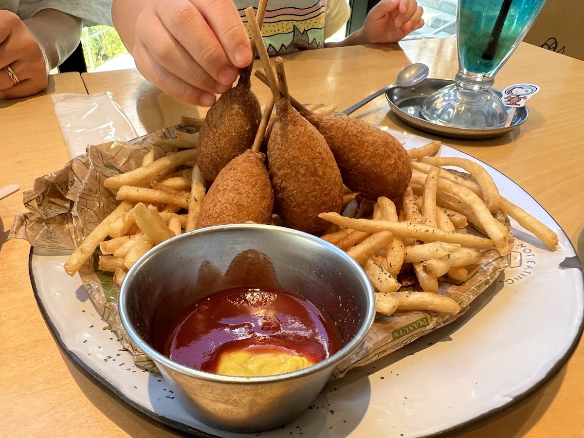 As for the menu, there’s no shortage of exciting and creative dishes. One standout is Chef Spike's Mexican Pancakes, which brings a fun twist to the classic pancake dish with a delicious Mexican flair. The pancakes are fluffy and topped with tasty ingredients, making it a must-try for those who enjoy a sweet and savory combo. If you're a fan of Snoopy, you'll love the スヌーピーの rarf rarf パンケーキ, a playful dish inspired by the beloved character that is as cute as it is delicious.